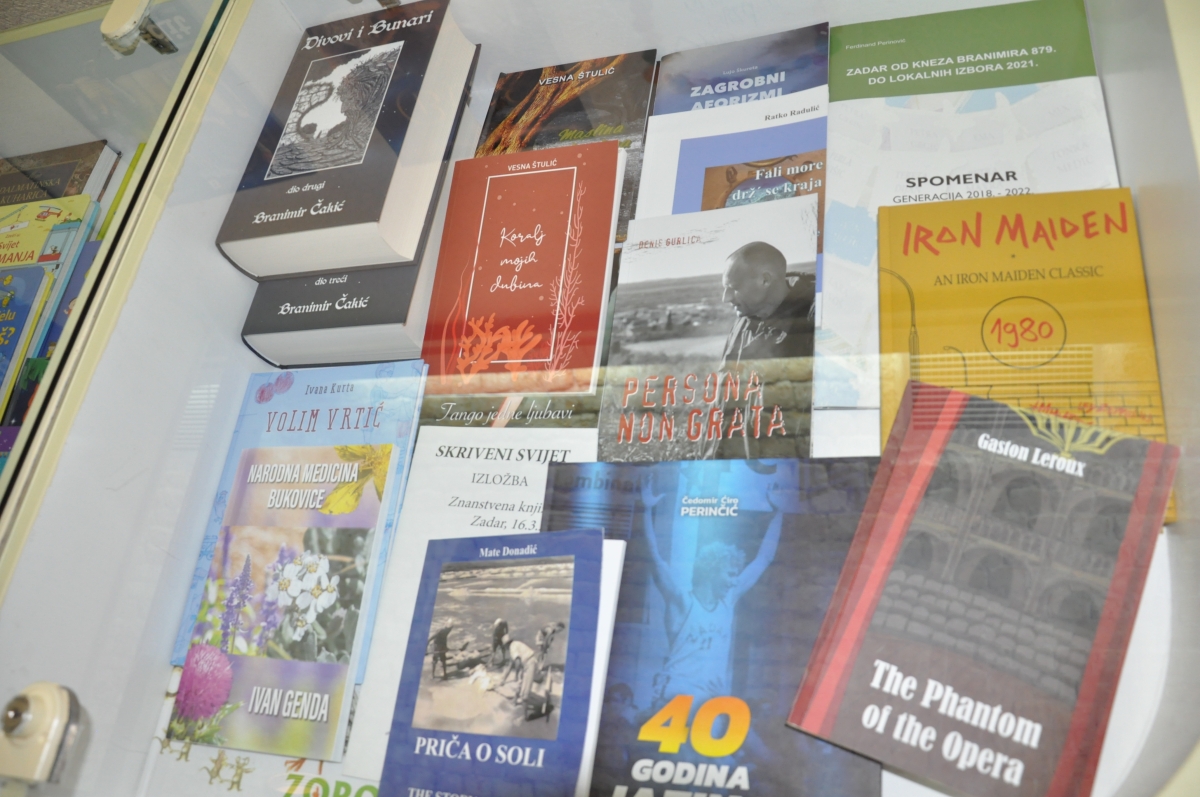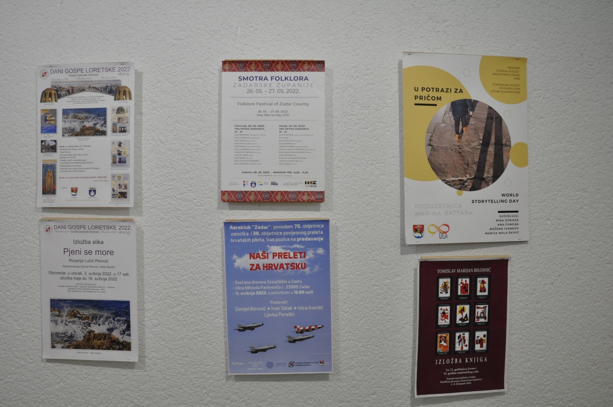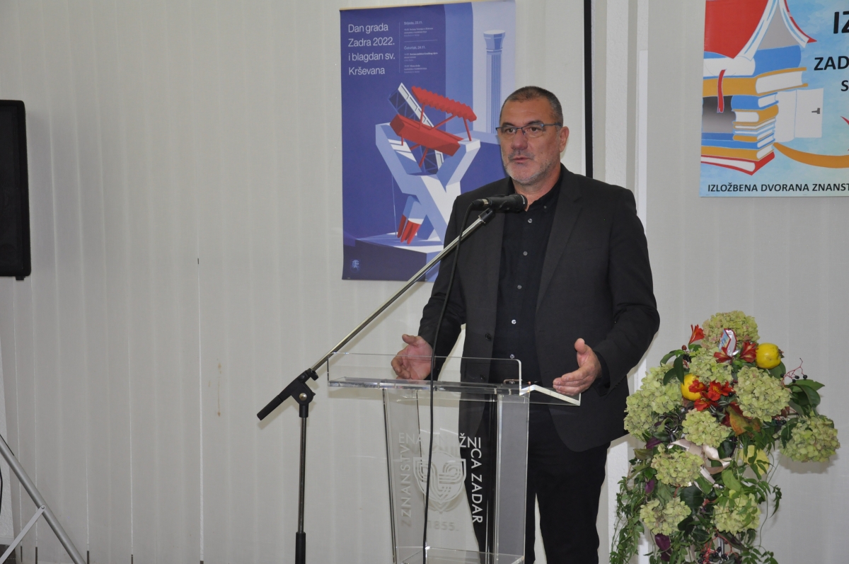 Ostale fotogalerije 7.4.2026.: ZNANSTVENI SKUP U ČAST PROFESORA VJEKOSLAVA ĆOSIĆA24.3.2026.: ZADAR ČITA 2026.9.3.2026.: otvorenje izložbe "ARBANASI U FONDU ZNANSTVENE KNJIŽNICE SVEUČILIŠTA U ZADRU"5.3.2026.: Međunarodni znanstveni skup "ZADARSKI FILOLOŠKI DANI 11"23.2.2026.: predstavljanje knjige "DREVNO PISMO NOVOG DOBA: GLAGOLJICA U JEZIČNOM KRAJOLIKU HRVATSKE" dr. sc. Antonija Oštarića12.12.2025.: otvorenje izložbe „KULTURA DARA“10.12.2025.: književna večer "POEZIJA U PRIJEVODU"3.12.2025.: predavanje "MENTALNO ZDRAVLJE MLADIH U 21. STOLJEĆU"25.11.2025.: otvorenje 32. izložbe "IZDAVAŠTVO NA ZADARSKOM PODRUČJU"4.11.2025.: književna večer "KNJIŽNIČARI ZA KNJIŽNIČARE I O KNJIŽNIČARIMA"31.10.2025.: otvorenje izložbe "SKRIVENA BLAGA"22.10.2025.: posjet veleposlanika Kraljevine Belgije Znanstvenoj knjižnici Sveučilišta u Zadru10.10.2025.: svečano predavanje veleposlanika Republike Italije u Hrvatskoj NJ. E. Paula Trichilla "LETTERATURA E DIPLOMAZIA"30.9.2025.: radionica "GRAFIČKI UREDNICI NA TRAGU RENESANSE"18.07.2025. izložba Aldine: izbor tiskarskih rariteta iz fonda Znanstvene knjižnice Sveučilišta u Zadru10.6.2025.: izložba "ZADARSKE SPORTSKE PRIČE - IZBOR IZ FONDA GRADSKE KNJIŽNICE ZADAR I ZNANSTVENE KNJIŽNICE SVEUČILIŠTA U ZADRU"27.5.2025.: predavanje Filipa Lenića u sklopu izložbe povodom obilježavanja 150 godina od dolaska cara Franje Josipa I. u Zadar i Dalmaciju8.5.2025.: predstavljanje poezije akademika Drage Štambuka7.5.2025.: XIV. DANI SEKSUALNOSTI U ZADRU29.4.2025.: IZLOŽBA I TRIBINA „SA ZADROM U MISLIMA“19.3.2025.: predavanje "POETSKA HIPERBOLA – OD RETORIKE DO INTERPRETACIJE" doc. dr. sc. Tina Lemca10.3.2025.: predstavljanje zbornika radova "MOLIÈRE U HRVATSKOJ KULTURI"17.2.2025.: promocija sveučilišnog udžbenika "BITI ZAPOSLEN RODITELJ DJETETA S TEŠKOĆAMA U RAZVOJU: UMIJEĆE (NE)MOGUĆEG"4.12.2024.: javno predavanje "KRETANJE LJUDI I IDEJA NA DALMATINSKOM VIŠEGRANIČJU: RAZVOJ POSJEDA BORELLI U UVJETIMA BROJNIH IZAZOVA RANOG NOVOG VIJEKA" dr. sc. Dubravke Mlinarić26.11.2024.: predstavljanje knjige i projekta "BAJKA O NOTICAMA"22.11.2024.: otvorenje 31. izložbe "IZDAVAŠTVO NA ZADARSKOM PODRUČJU"20.9.2024.: predstavljanje dva izdanja Desničinih susreta9.7.2024.: otvorenje izložbe "BASTION I BIVŠA CRKVA SV. NIKOLE U SKLOPU ZADARSKOG FORTIFIKACIJSKOG SUSTAVA"23.5.2024.: otvorenje izložbe "NAVIGACIJA POMOĆU SLIKA I ZAPISA – IZLOŽBA STARIH POMORSKIH KARATA I PLOVIDBENIH PRIRUČNIKA"7.5.2024.: otvorenje izložbe "NIKOLA TOMMASEO U FONDU ZNANSTVENE KNJIŽNICE"2.5.2024.: POSJET JAPANSKOG VELEPOSLANIKA23.4.2024.: FESTIVAL ZNANOSTI U ZNANSTVENOJ KNJIŽNICI SVEUČILIŠTA U ZADRU12.4.2024.: predavanje "NOVOSTI IZ TEORIJE POEZIJE" doc. dr. sc. Tina Lemca9.4.2024.: predavanje "DISLEKSIJA I ZVUČNE KNJIGE"22.3.2024.: ZADAR ČITA 2024. - dodjela nagrada20.3.2024.: predstavljanje publikacija nastavnika Odjela za kroatistiku Sveučilišta u Zadru18.3.2024.: izložba i predavanje "KOMPLEKS ŽENSKOG ODGAJALIŠTA SV. DIMITRIJA U ZADRU"12.03.2024.: predavanje "ŠTO KAD DIJETE NE PROGOVORI NA VRIJEME?"06.03.2024.: predavanje "SURADNJA LOGOPEDA I RODITELJA U OTKRIVANJU MOGUĆIH UZROKA REGRESIJE U KOMUNIKACIJSKOM I KAŠNJENJA ILI ZASTOJA U JEZIČNOM RAZVOJU"19.12.2023.: predavanje "BAŠTINA HUMANOSTI U ZADRU: 145 GODINA HRVATSKOGA CRVENOG KRIŽA"19.12.2023.: predavanje "PRIČAMO O ALKOHOLU! I PITAMO VAS: PIJU LI VAŠA DJECA?"15.12.2023.: predstavljanje romana "TONY" Nikole Marinkovića7.12.2023.: predavanje "UMJETNA INTELIGENCIJA (AI) I OBRAZOVANJE: PRIJETNJE, PRILIKE, PERSPEKTIVE"22.11.2023.: otvorenje 30. izložbe "IZDAVAŠTVO NA ZADARSKOM PODRUČJU"14.11.2023.: IZLOŽBA FOTOGRAFIJA O ŠEĆERNOJ BOLESTI10.11.2023.: predavanje "TERAPEUTSKA ULOGA FOTOGRAFIJE U PODRUČJU KULTURE I OBRAZOVANJA"6.11.2023.: PREDSTAVLJANJE PROŠIRENOG IZDANJA I PRETISKA KNJIGE PETRA KUNIČIĆA "HRVATI NA LEDENOM MORU"25.10.2023.: otvorenje izložbe "BAŠTINA HUMANOSTI U ZADRU: 145 GODINA HRVATSKOGA CRVENOG KRIŽA"18.10.2023.: MJESEC HRVATSKE KNJIGE U ZNANSTVENOJ KNJIŽNICI ZADAR28.9.2023.: predstavljanje romana "LA VERDAD VERDADERA" Nikole Marinkovića7.9.2023.: otvorenje izložbe "STARI ATLASI - NOVE PRIČE"18.8.2023.: KULTURNO TURISTIČKA RUTA "ZADAR – LA BELLE ÉPOQUE"19.7.2023.: IZLOŽBA SLIKA "LJETNI REZIME" ANE JAGIĆ5.7.2023.: KOPNENA VRATA U ZADRU6.6.2023.: ZORANIĆEVE "PLANINE" U ZVUKU, SLICI I KNJIŽEVNOJ RIJEČI18.5.2023.: predstavljanje pet zbirki pjesama Jose Štuline5.5.2023.: otvorenje izložbe "MOLIÈRE U FONDU ZNANSTVENE KNJIŽNICE ZADAR"3.5.2023.: predavanje "MEDIJSKA PISMENOST IZMEĐU KRITIČKOG PROMIŠLJANJA I MANIPULACIJA" doc. dr. sc. Nenada Vertovšeka28.4.2023.: predstavljanje knjige doc. dr. sc. Tina Lemca "O PJESMI PJESMOM"27.4.2023.: predavanje izv. prof. dr. sc. Vere Graovac Matassi "POPISI STANOVNIŠTVA - NEKAD I SAD"19.4.2023.: izložba i radionica "OŽIVIMO STARE RECEPTE: KULINARSKA BAŠTINA U RUKAMA MLADIH"20.3.2023.: predavanja "UNIVERZALNOST MOLIEREOVE KOMIKE I NJEZINA HRVATSKA RECEPCIJA" izv. prof. dr. sc. Mirne Sindičić Sabljo i prof. dr. sc. Divne Mrdeže Antonine17.3.2023.: predavanje "predavanje "JEZIK KAO BAŠTINA" dr. sc. Ivane Kurtović Budja24.2.2023.: otvorenje izložbe "SVETCI TITULARI ZADARSKIH CRKAVA" Stipana Kujundžića Šuntića17.2.2023.: predavanja "KUKCI U KUHINJI" I "INDUSTRIJSKI PREHRAMBENI PROIZVODI - ŠTO ZAPRAVO JEDEMO?"8.2.2023.: predstavljanje knjige "ŽIVA FIZIKA" dr. sc. Zdeslava Hrepića2.2.2023.: izlaganje prof. Mirte Tomas "NA PUTU PREMA ŽIVOM SVJETLU (SVJEDOČANSTVO O AFRICI)"16.1.2023.: predavanje dr. sc. Tomislava Sunića "METODA NOVE INKVIZICIJE - LIBERALNI HIGIJENSKI NOVO-GOVOR, NOVA VRSTA POLITIČKE REPRESIJE"11.11.2022.: DAN GRADA - ZADARSKA TURISTIČKA RUTA NADAHNUTA BAŠTINOM ZNANSTVENE KNJIŽNICE: „ZADAR – LE BELLE EPOQUE TOUR“11.11.2022.: IZLOŽBA 15. MEĐUNARODNE LIKOVNE KOLONIJE 2022.4.11.2022.: predstavljanje zbirke pjesama "DIVLJA NJEŽNOST" Franka Sorića