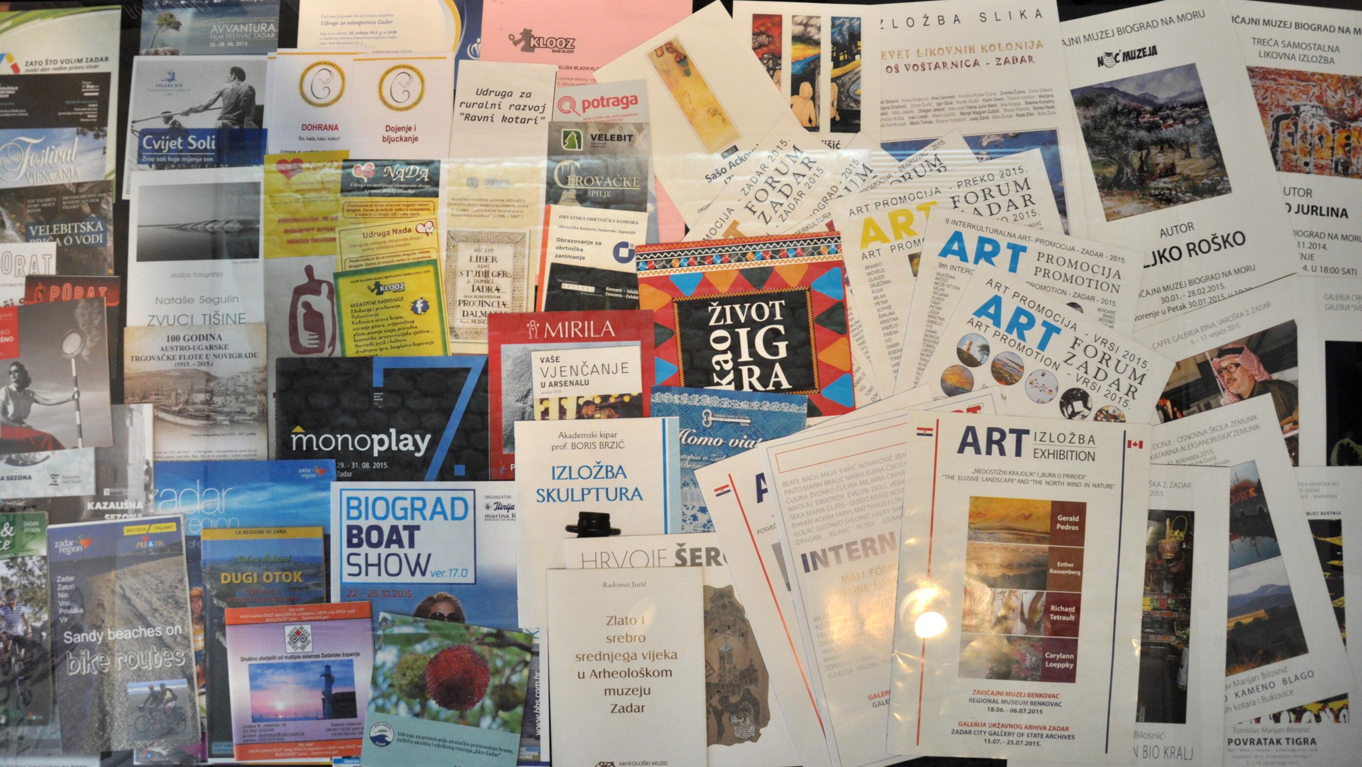 Izložen je izbor izdanja tiskanih omeđenih i serijskih publikacija zadarskih autora i izdavača te plakata društvenih, kulturnih i sportskih događanja u proteklom jednogodišnjem razdoblju.