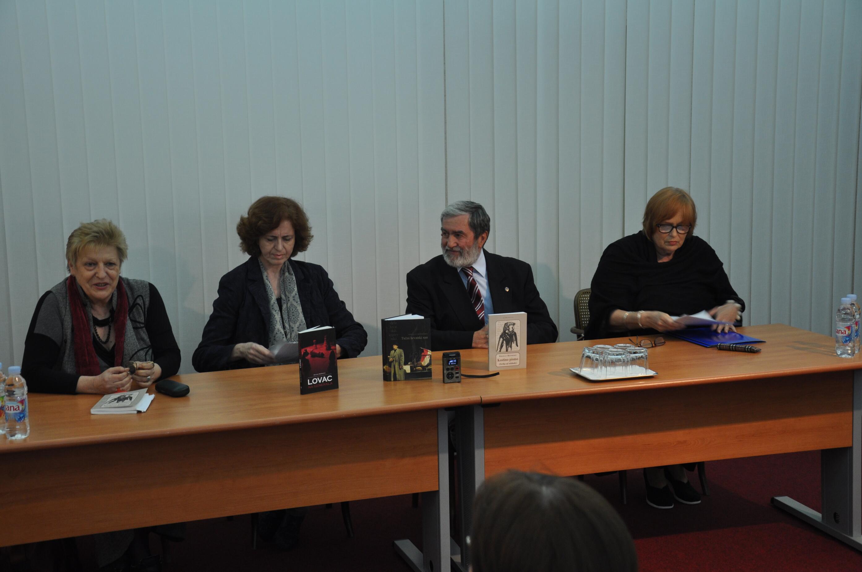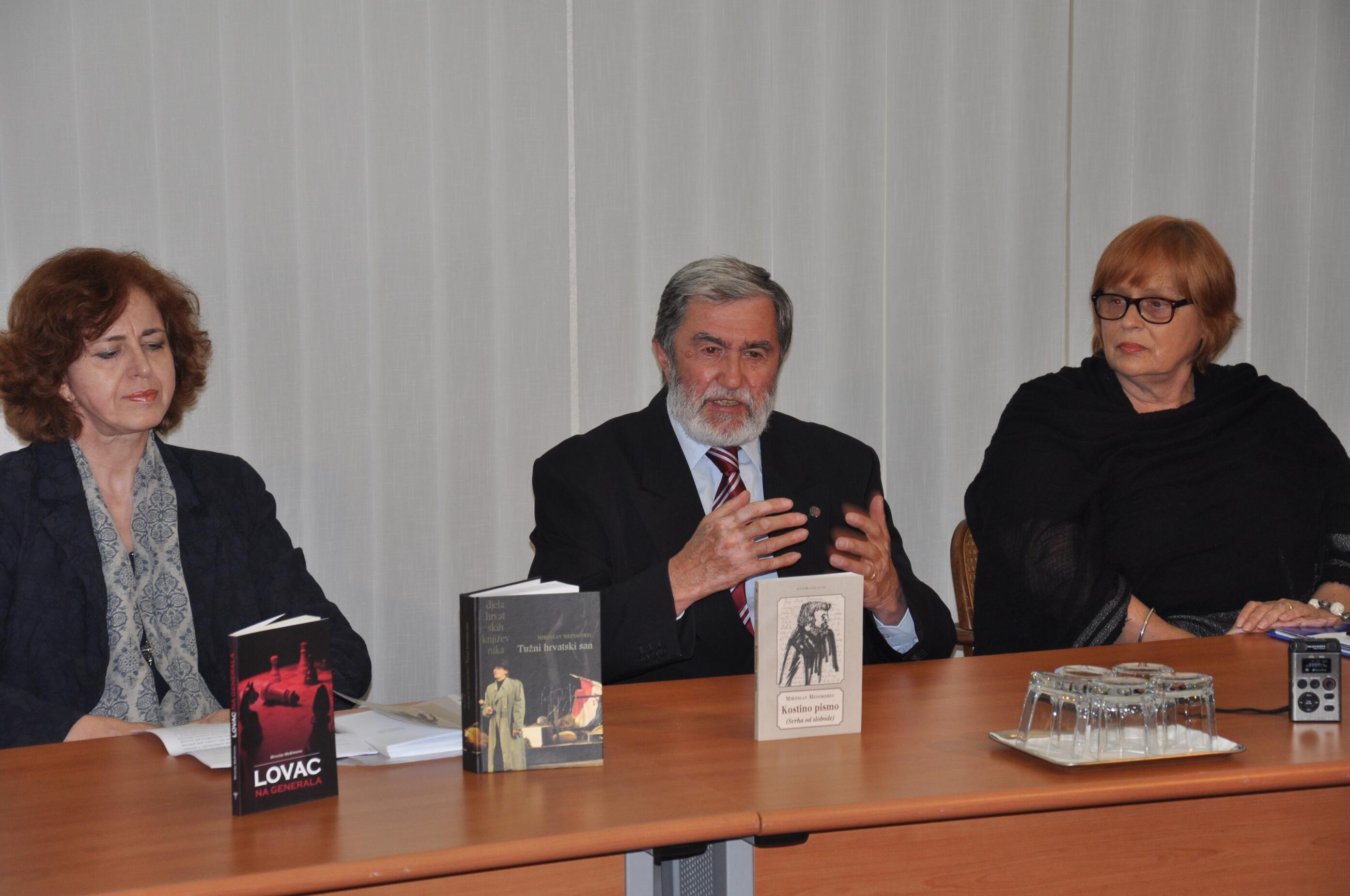 U utorak, 28. travnja u 19,30 sati u Izložbenoj dvorani Znanstvene knjižnice predstavljene su knjige "LOVAC NA GENERALA" i "KOSTINO PISMO: (SVRHA OD SLOBODE)" Miroslava Međimorca.