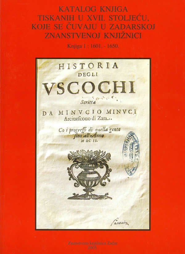 Katalog knjiga tiskanih u 17. stoljeću, koje se čuvaju u zadarskoj Znanstvenoj knjižnici. – 2005, knj. 1: 1601.-1650. / obradila i priredila Andrijana Jusup.