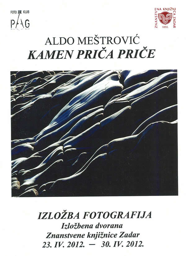 Kamen priča priče : izložba fotografija : Izložbena dvorana Znanstvene knjižnice Zadar, 23.IV.2012.-30.IV.2012. / Aldo Meštrović ; [predgovor Miro Grubić]. – 2012.
