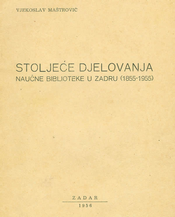 Stoljeće djelovanja Naučne biblioteke u Zadru : (1855-1955) / Vjekoslav Maštrović . – 1956.