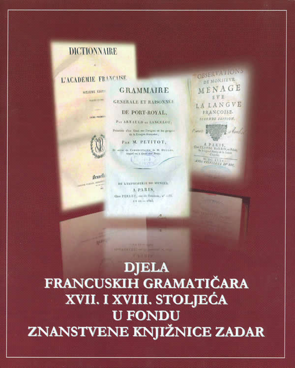 Djela francuskih gramatičara XVII. i XVIII. stoljeća u fondu Znanstvene knjižnice Zadar : katalog = Les oeuvres des grammairiens francais des XVIIe et XVIIIe siecles dans la Bibliotheque scientifique de Zadar : catalogue / [kataložna obrada Željka Aleksić ; autorica izložbe, izrada kazala Milenka Bukvić]. - 2009.