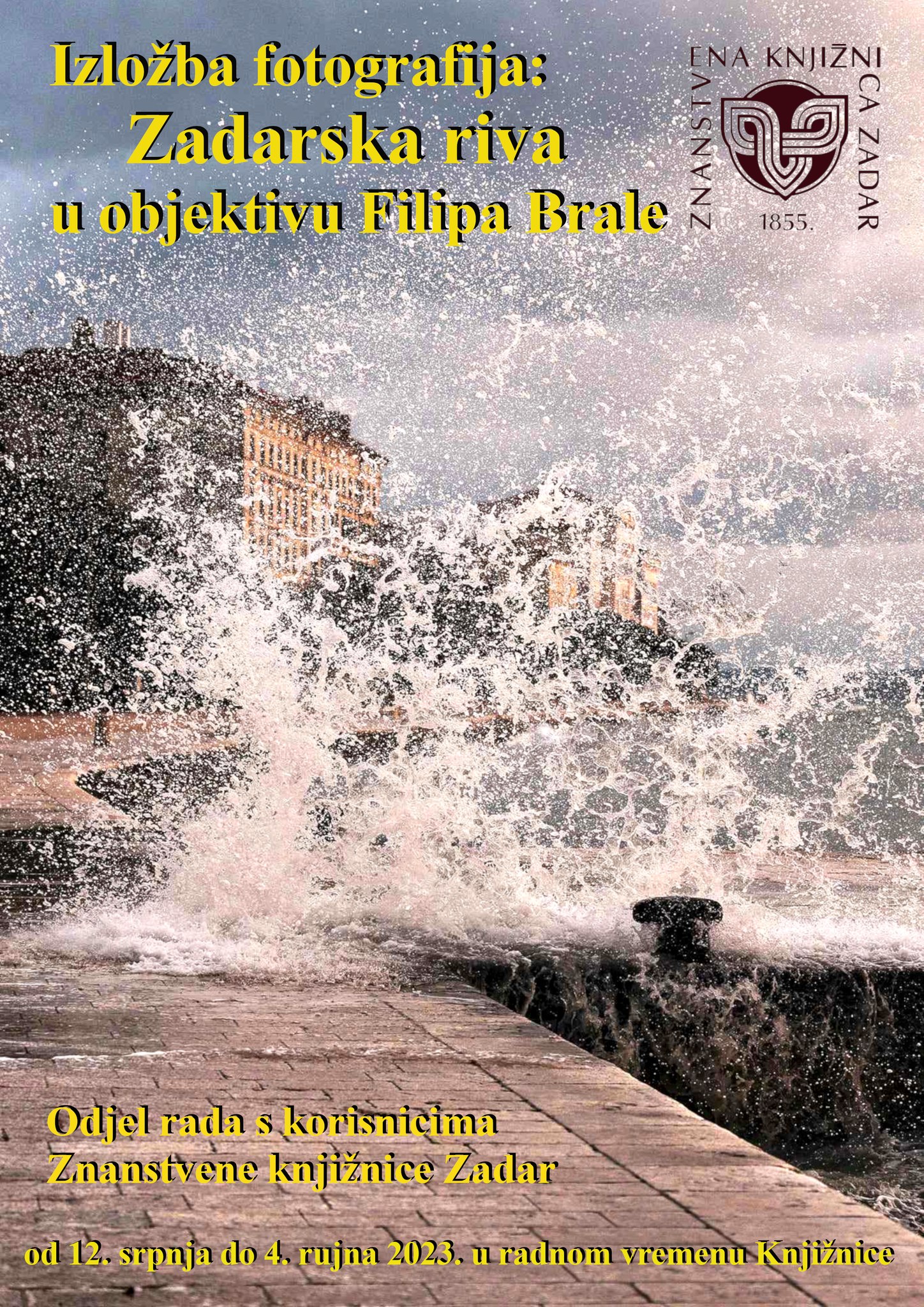 Poznati zadarski fotograf Filip Brala rođen je u Zadru 14. svibnja 1985. godine, a fotografijom se počinje baviti već kao srednjoškolac. Autor izložbe dobitnik je nagrade Zbora fotoreportera Hrvatske za najbolju fotografiju u kategoriji portret 2013. godine, a 2015. također osvaja prvo mjesto u kategoriji prirode i okoliša. Braline fotografije pronašle su svoje mjesto u hrvatskom izdanju National Geographica. U prostoru Znanstvene knjižnice (Odjel rada s korisnicima) izlaže prvi puta izborom iz fotografija na temu zadarske rive. Izložbu možete posjetiti od 12. srpnja do 4. rujna 2023. godine u radnom vremenu Knjižnice.