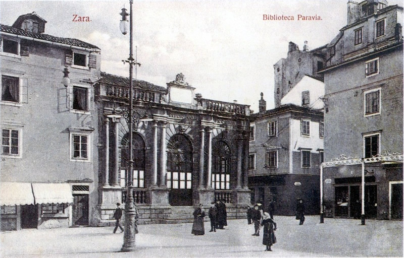 Prigodom posjete Zadru 1850. godine Paravia je odlučio rodnom gradu darovati svoju bogatu zbirku knjiga koja je trebala poslužiti kao jezgra buduće javne knjižnice. Po njegovoj želji Gradska općina namijenila je Knjižnici prostor u Gradskoj loži (slika 1, 2) na središnjem gradskom trgu. Prve je godine fond Knjižnice sadržavao 18 000 svezaka knjižnične građe koja se prema pravilniku koristila samo u zgradi Knjižnice.