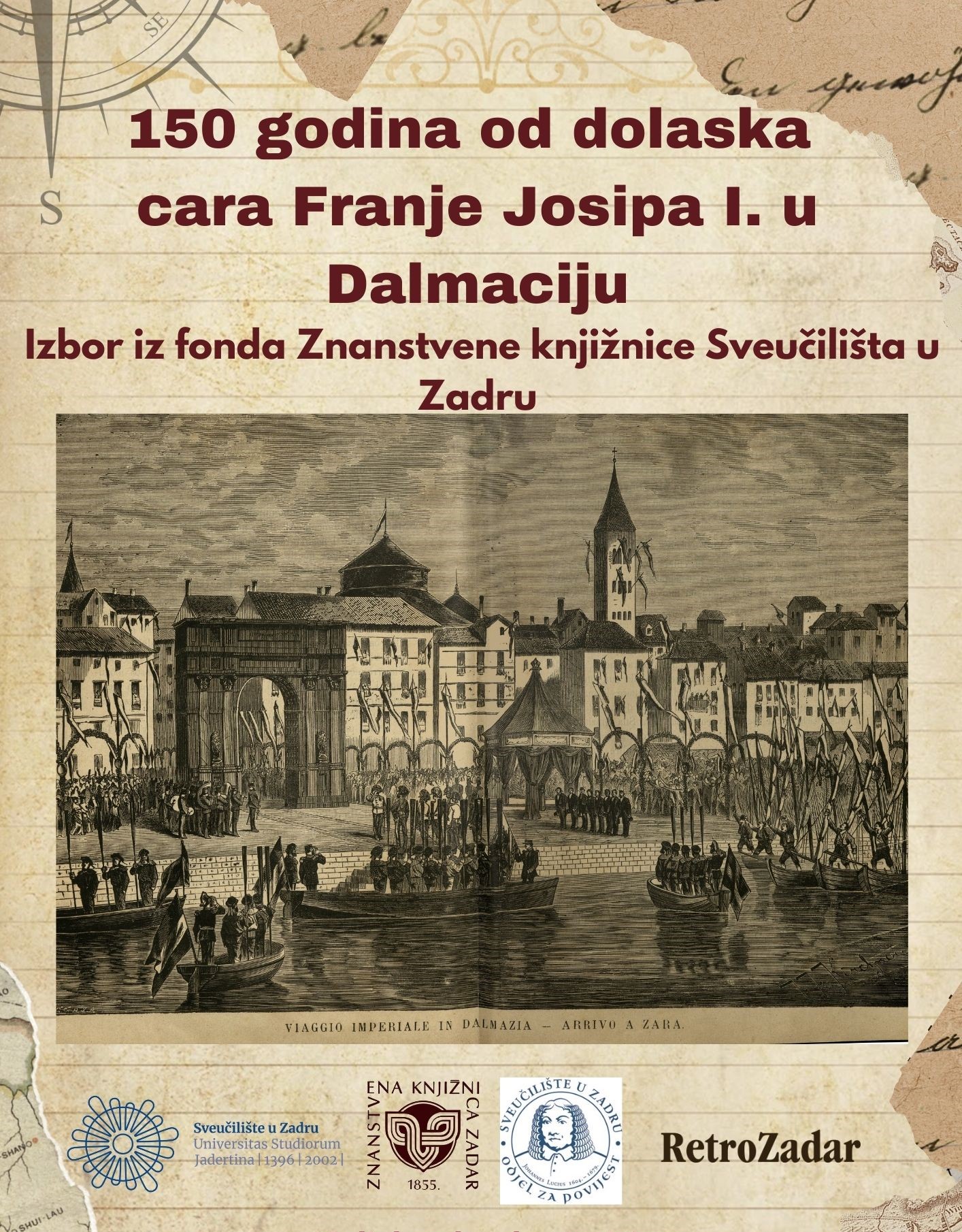 Izbor iz fonda povodom obilježavanja 150 godina od dolaska cara Franje Josipa I. u Zadar i Dalmaciju produžen je do 1. rujna 2025. Izložbu možete pogledati u radnom vremenu Knjižnice u Odjelu rada s korisnicima Znanstvene knjižnice Sveučilišta u Zadru.