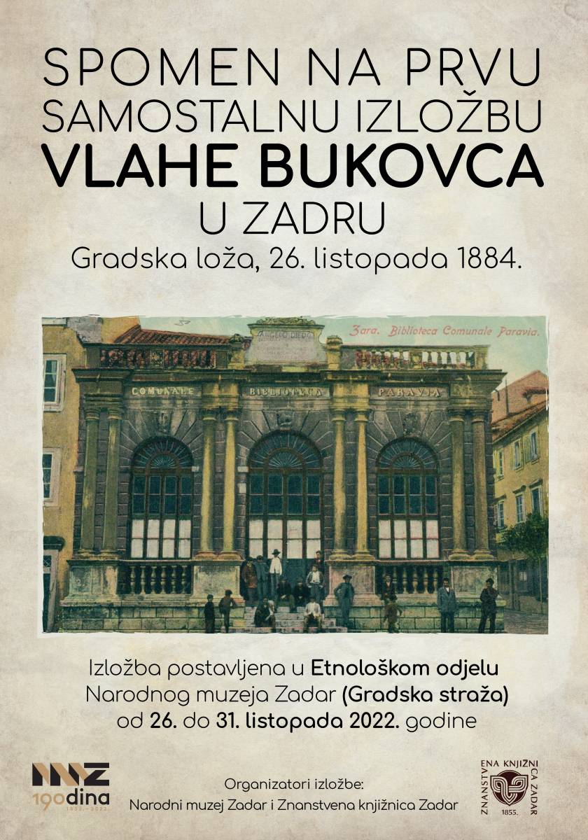 2022. godine obilježava se 100 godina od smrti Vlahe Bukovca, najznačajnijeg hrvatskog slikara na prijelazu iz 19. u 20. stoljeće. Izložba predstavlja muzejsku i knjižničnu građu (slike, knjige, razglednice, fotografije, elektronička građa…) vezanu za Vlahu Bukovca s naglaskom na njegovu prvu samostalnu izložbu priređenu u Zadru.