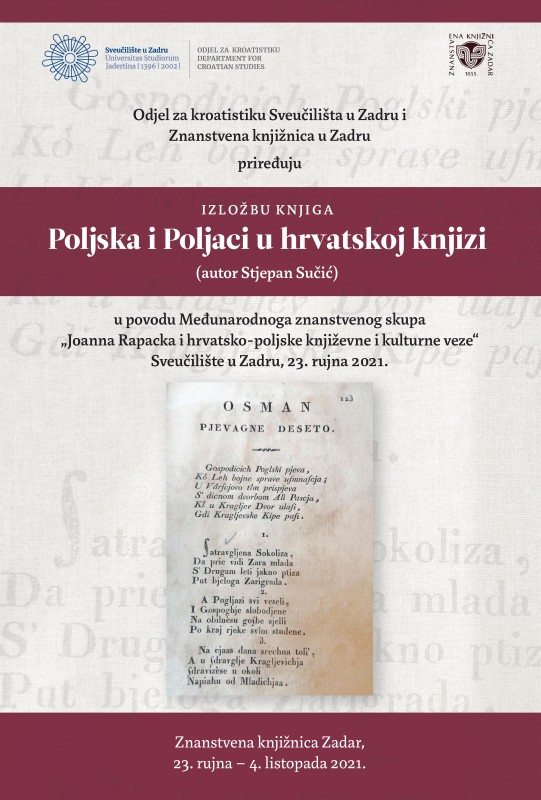 U četvrtak 23. rujna, u povodu Međunarodnoga znanstvenog skupa "Joanna Rapacka i hrvatsko-poljske književne i kulturne veze", u Izložbenoj dvorani Znanstvene knjižnice Zadar otvorit će se izložba knjiga "POLJSKA I POLJACI U HRVATSKOJ KNJIZI".