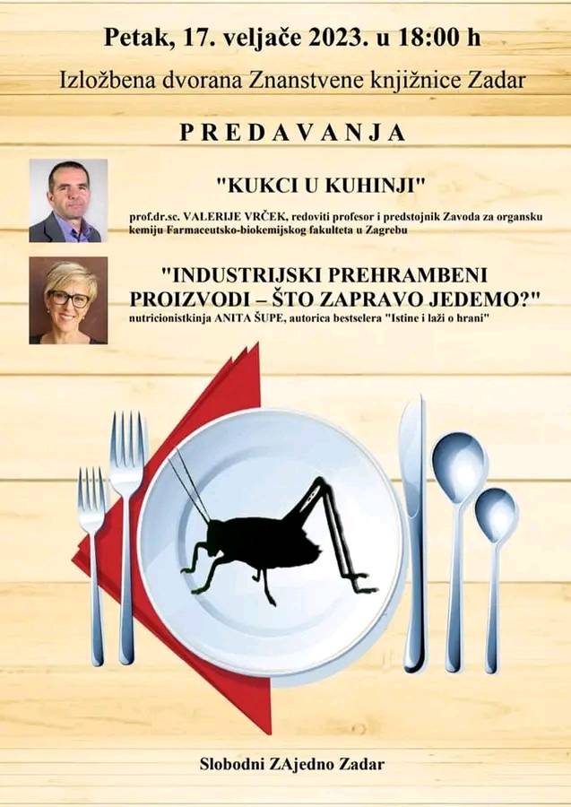 U petak, 17. veljače u 18,00 sati predavanja "KUKCI U KUHINJI" I "INDUSTRIJSKI PREHRAMBENI PROIZVODI - ŠTO ZAPRAVO JEDEMO?"