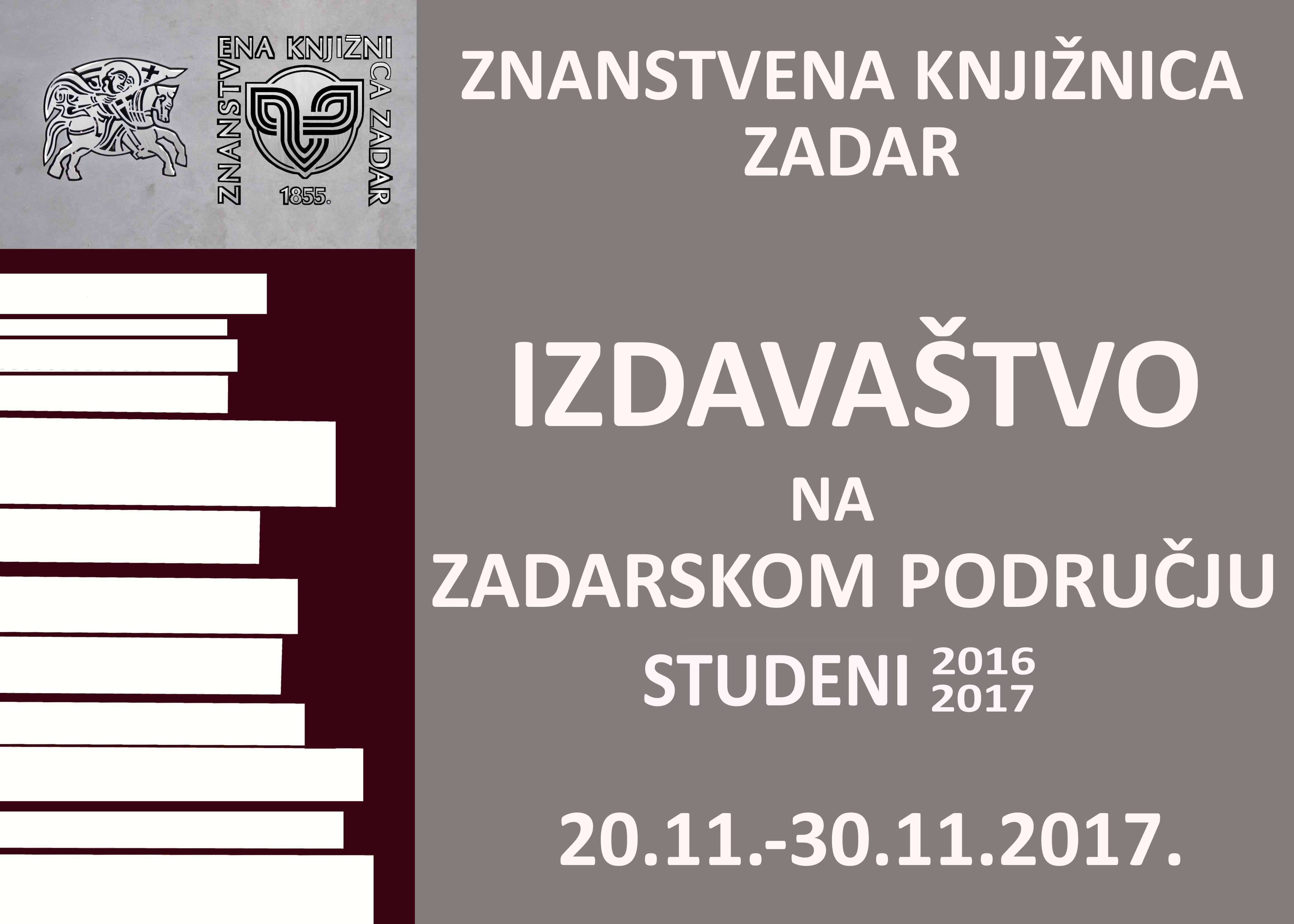 - U srijedu, 22. studenoga u 12,00 sati otvorenje 30. godišnje izložbe "IZDAVAŠTVO NA ZADARSKOM PODRUČJU"