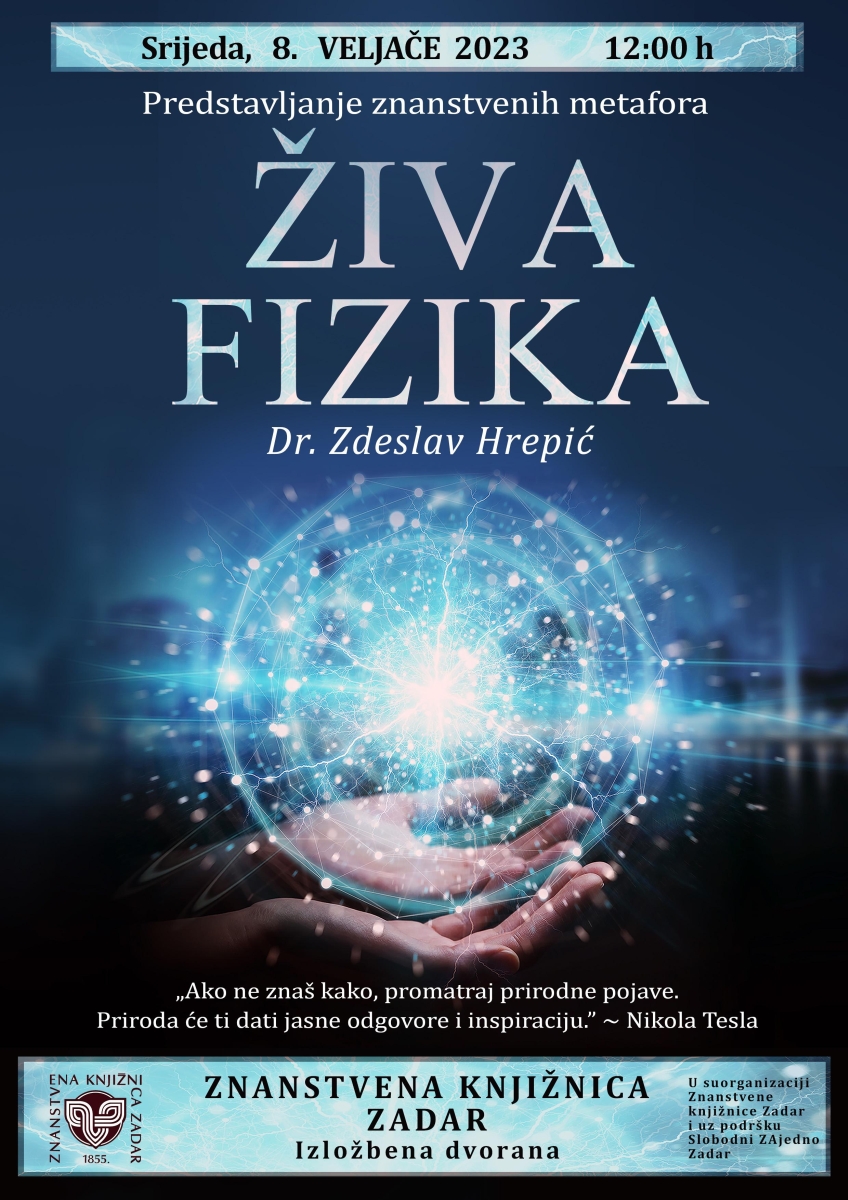 U srijedu, 8. veljače u 12,00 sati u Izložbenoj dvorani Znanstvene knjižnice održat će se predstavljanje knjige Živa fizika, autora dr. sc. Zdeslava Hrepića.